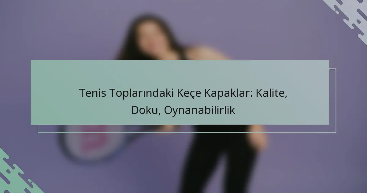 Keçe kaplamalar, tenis toplarının önemli bileşenleridir ve oynanabilirliklerini ve dayanıklılıklarını artırır. Keçenin kalitesi ve dokusu, oyuncuların sahada tutuş, spin ve genel performansını önemli ölçüde etkiler; bu nedenle oyuncuların oyunları için doğru tenis toplarını seçmeleri gerekmektedir. Bu faktörleri anlamak, daha keyifli ve etkili bir oyun deneyimi sağlayabilir.