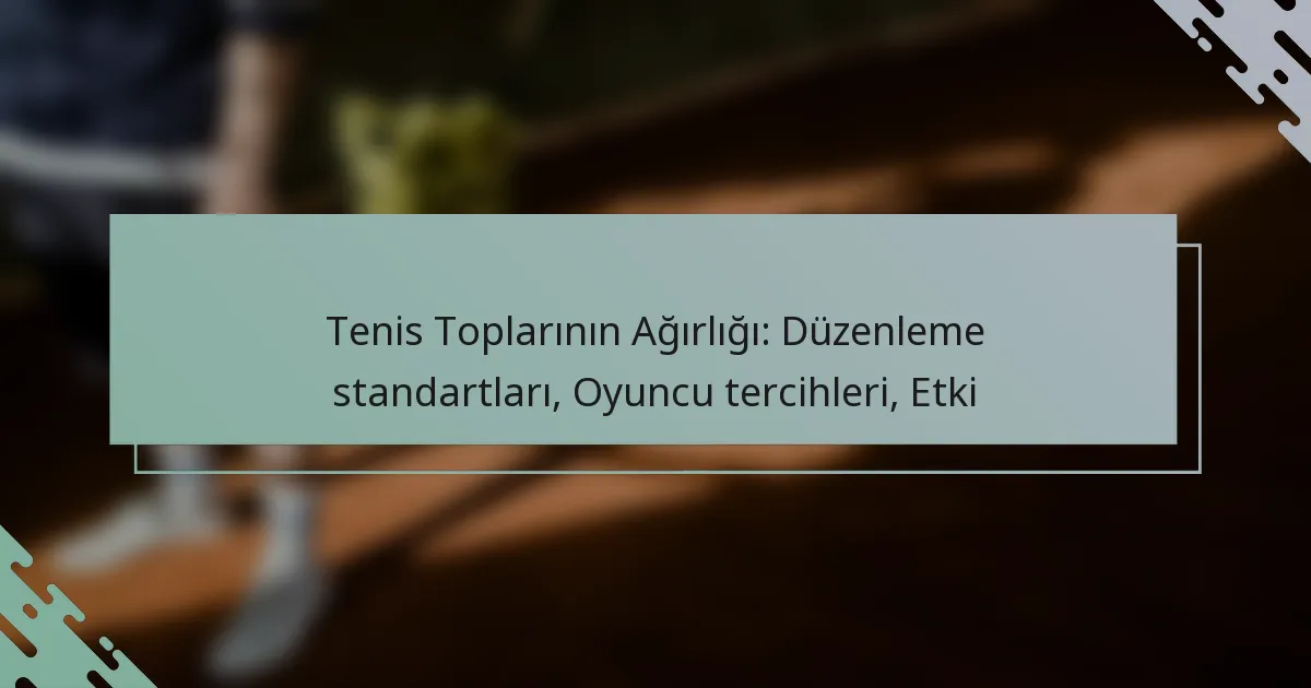 Bir tenis topunun ağırlığı, oyunu önemli ölçüde etkileyerek sıçrama, dayanıklılık ve oyuncu performansı gibi faktörleri etkiler. Genel olarak, düzenleyici tenis topları 56 ile 59.4 gram arasında ağırlığa sahiptir ve bu ağırlık, topun farklı yüzeylerle etkileşimini ve oyuncuların stratejilerini nasıl etkilediğinde kritik bir rol oynar.